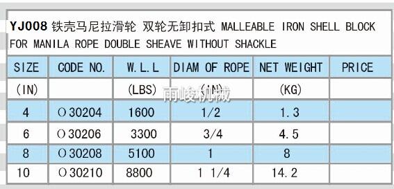 YJ008 鐵殼馬尼拉滑輪 雙輪無(wú)卸扣式