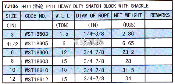 YJ186 H411 美式重型滑輪單輪旋轉(zhuǎn)卸扣式