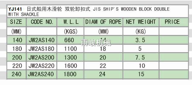 YJ141 日式船用木滑輪 雙輪卸扣式